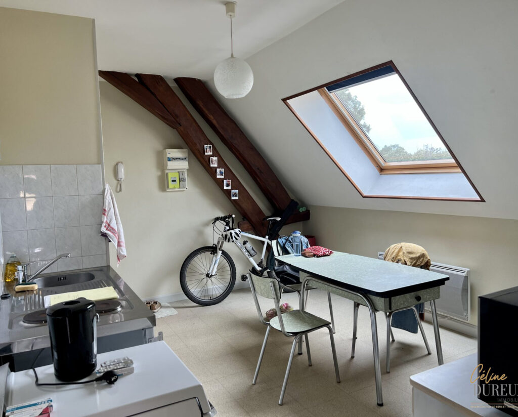 À louer à Pont-de-Veyle (01290) Grande Rue, appartement deux pièces d’environ 30 m² habitables situé au 2ème et dernier étage d’un petit immeuble. Il comprend une entrée avec placards, un séjour avec coin kitchenette équipée, une chambre et une salle d’eau avec toilettes.