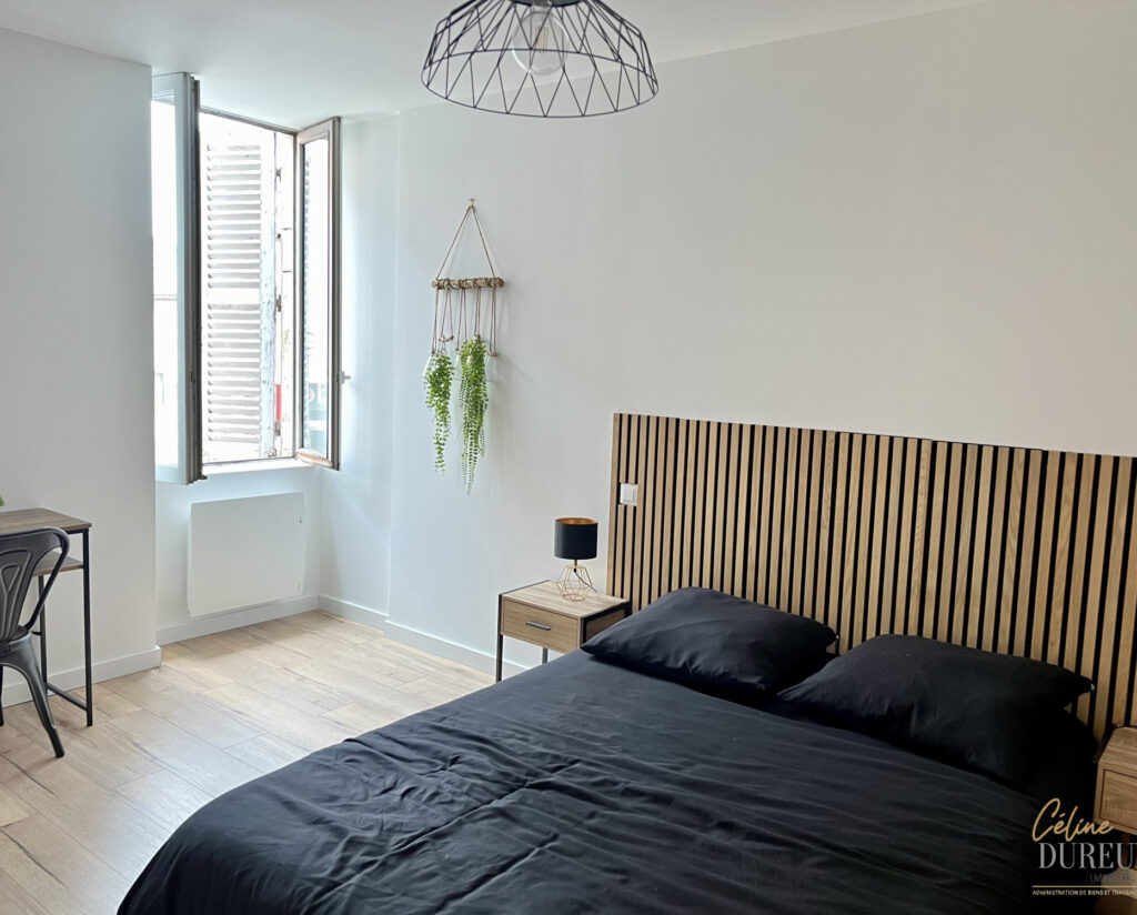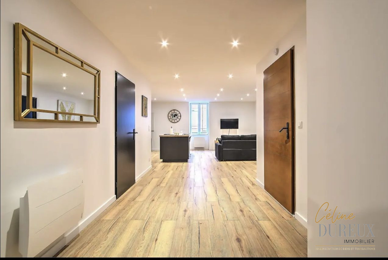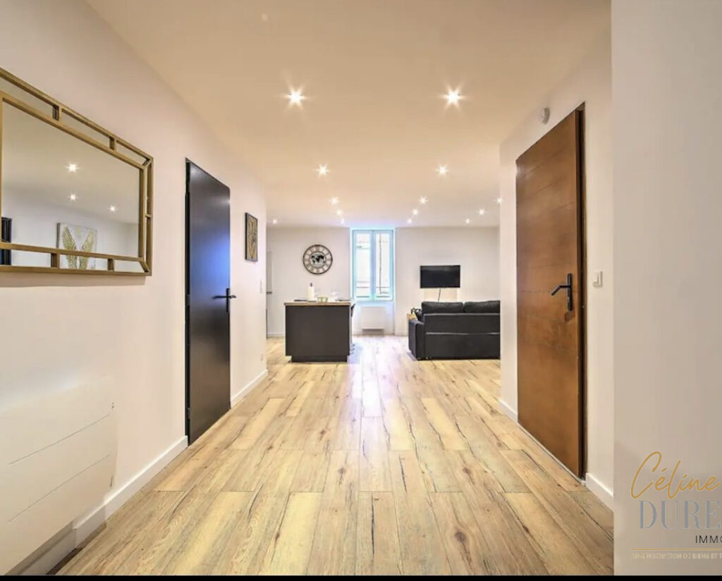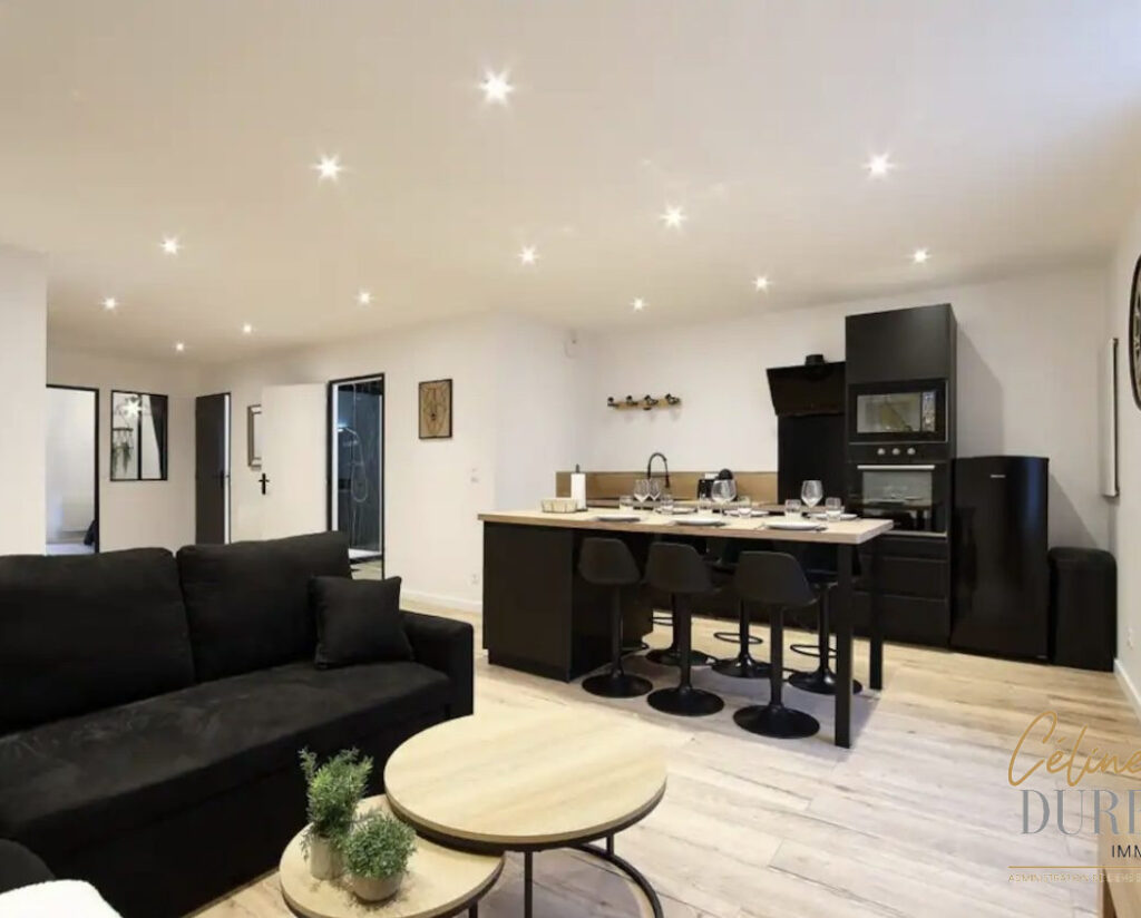 À louer à SAINT LAURENT SUR SAONE (01750), rue Albert Cousin, bel appartement entièrement rénové, meublé et équipé, situé au 1er étage d’un petit immeuble, comprenant : cuisine ouverte sur séjour, deux grandes chambres avec espace bureau et dressing, une salle d’eau et des toilettes séparées. Une terrasse et une cave complètent ce bien. Le chauffage est assuré par des radiateurs électriques.