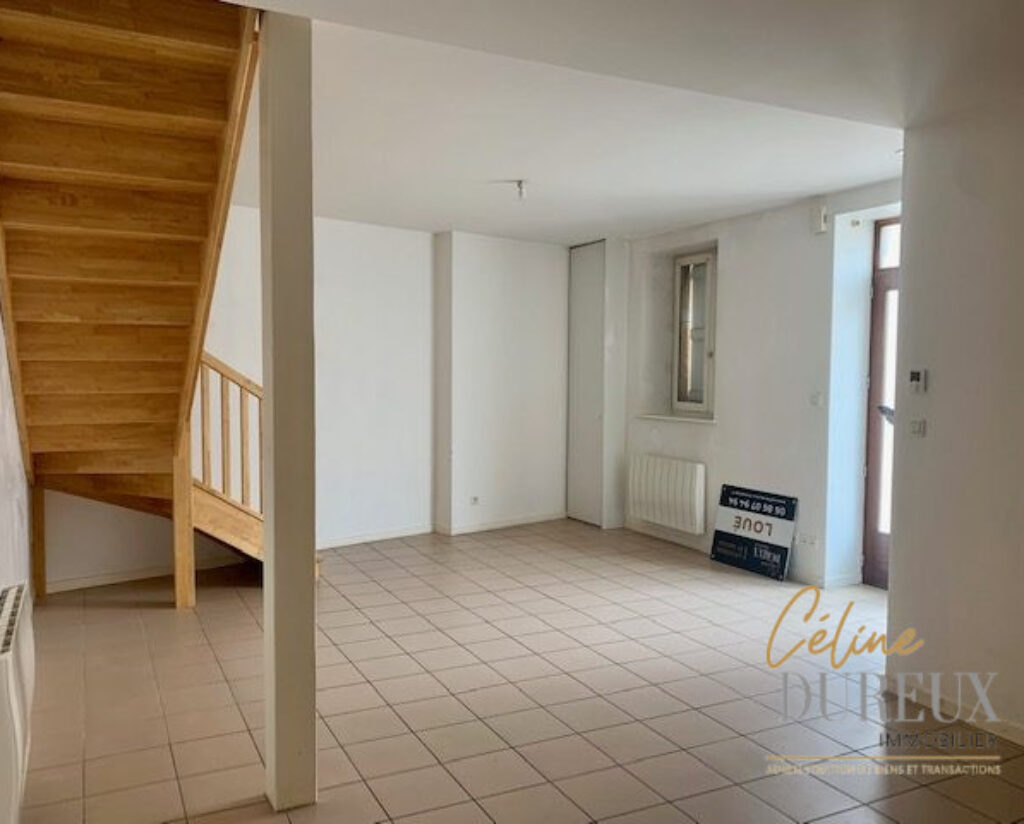 FEILLENS centre, rue de l’église, appartement en duplex de 75 m2 , comprenant au rez-de-chaussée, séjour ouvert sur cuisine, buanderie et toilettes; à l’étage, dégagement, deux chambres avec placards et salle de bains. Des places de stationnement situées dans la cour de l’immeuble complètent ce bien. Libre le 12 avril 2026.