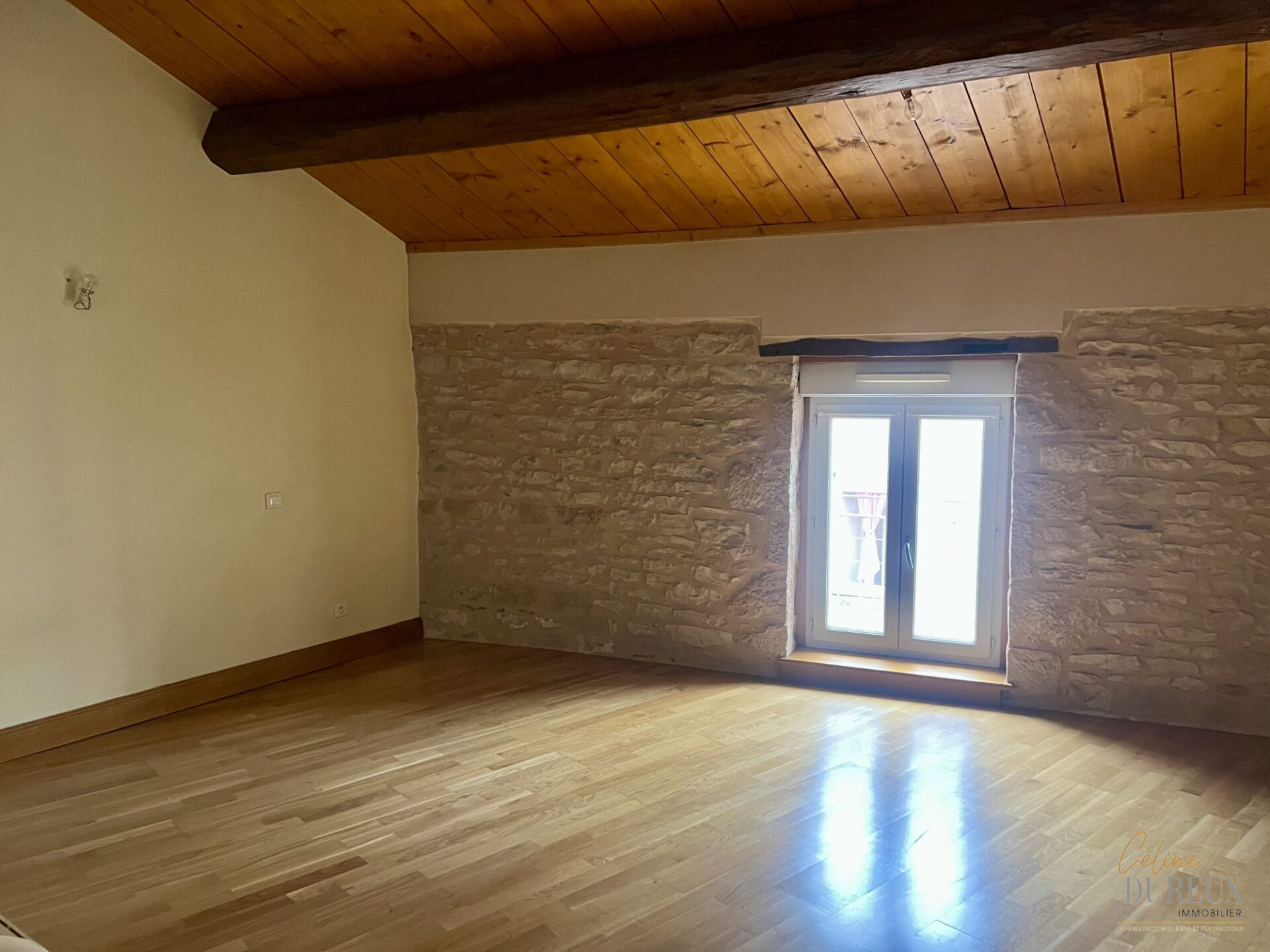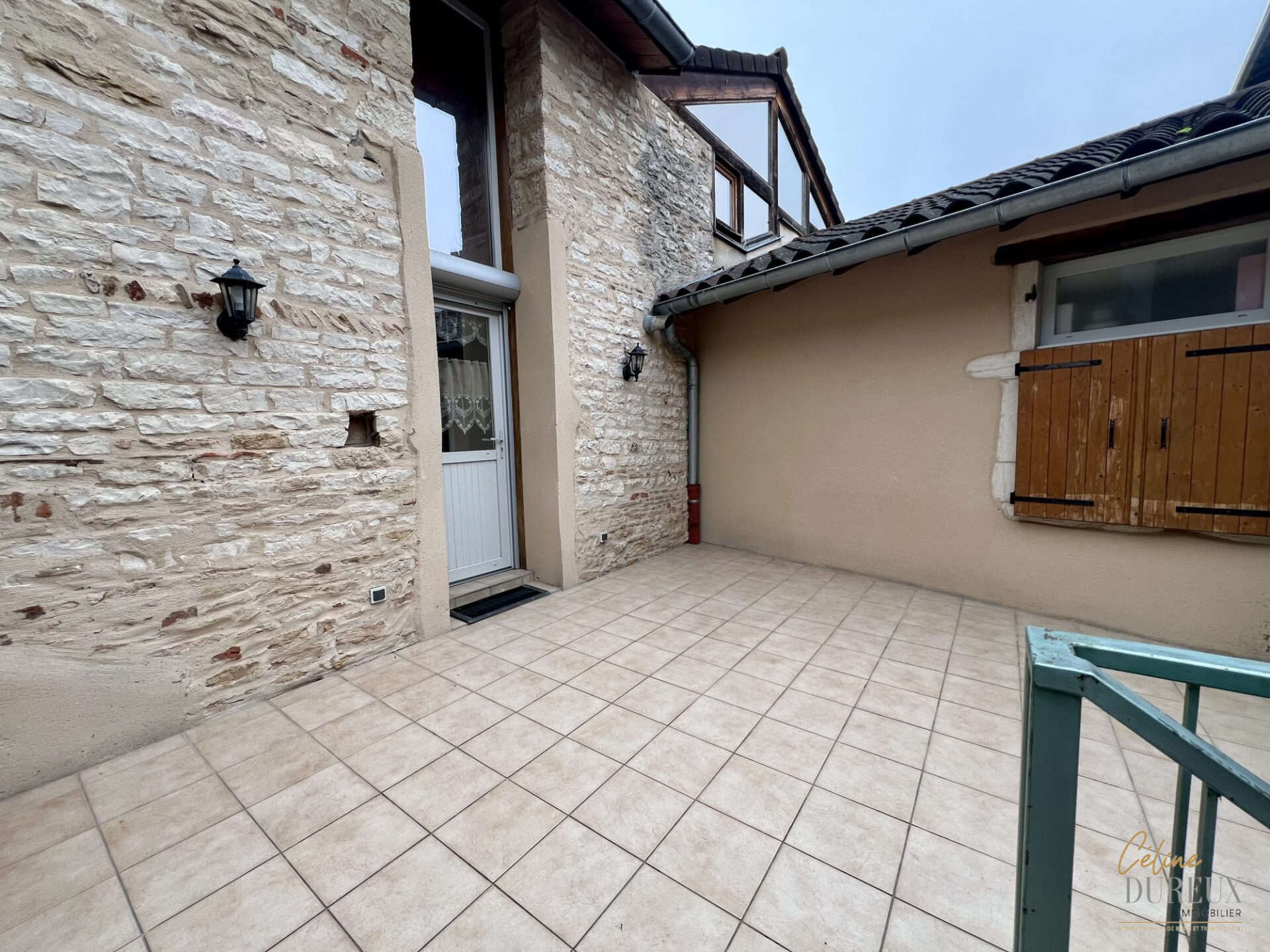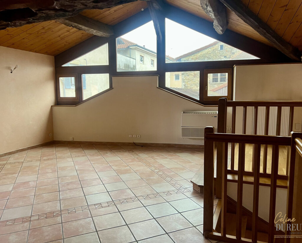 Rue Franche à PONT DE VAUX, belle maison de ville sur trois niveaux composée au rez-de-chaussée d’un grand garage, d’une buanderie et d’une cour intérieure; A l’étage d’une terrasse ouvrant sur la maison comprenant vaste séjour ouvert sur cuisine meublée équipée, suite parentale, salle d’eau et wc séparé; Au 2ème étage, deux chambres, un WC et une grande mezzanine pouvant faire office de salon, salle de jeux ou bureau.