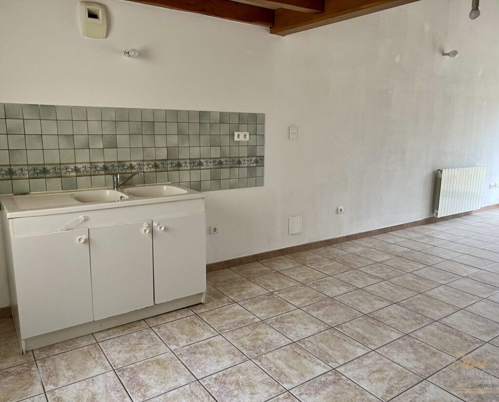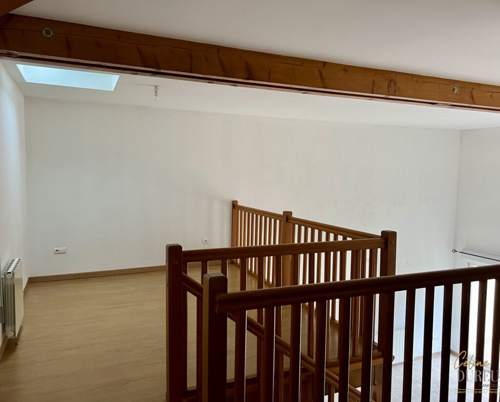 La maison, en bon état intérieur, se compose au rez-de-chaussée d’un grand séjour avec coin cuisine non aménagé, d’une chambre, d’un cellier et d’un WC; A l’étage d’une grande mezzanine desservant une chambre, une salle de bains et un WC.