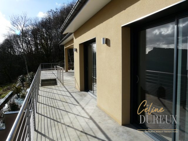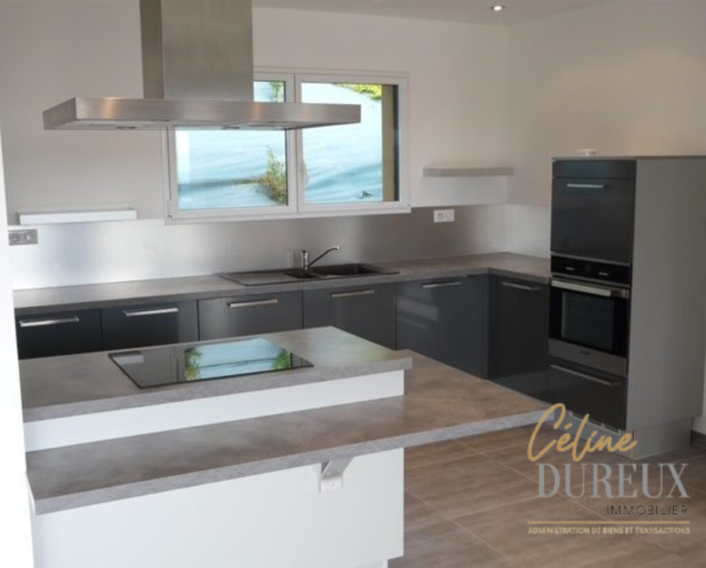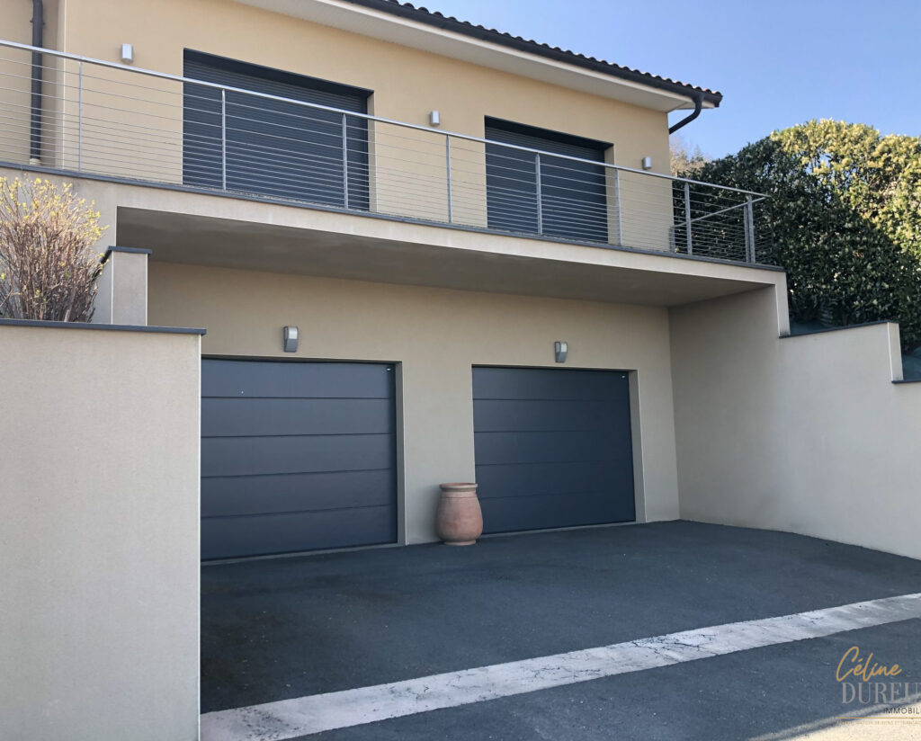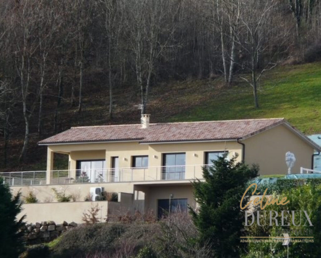Elle profite d’une vue panoramique et est exposée au sud-est. Cette maison s’organise comme suit : une entrée avec rangements, une pièce à vivre ouvrant sur une terrasse de 100 m2, une cuisine aménagée et équipée, quatre chambres avec dressing et rangements, une salle de bains et un water.