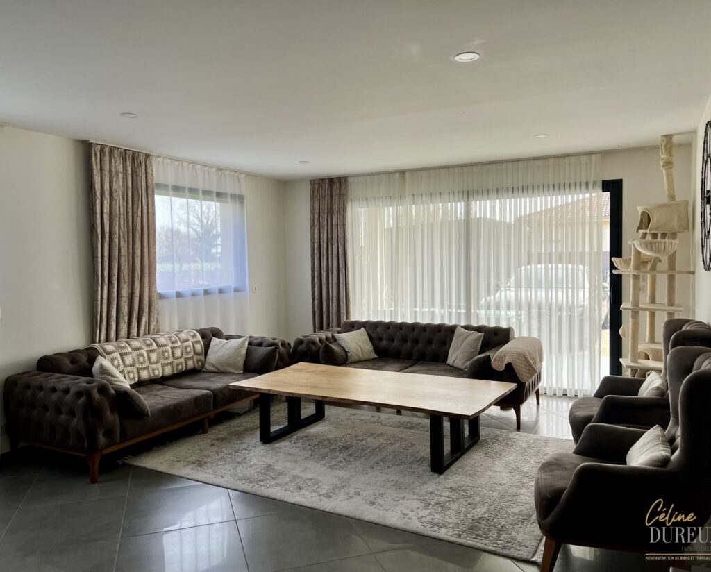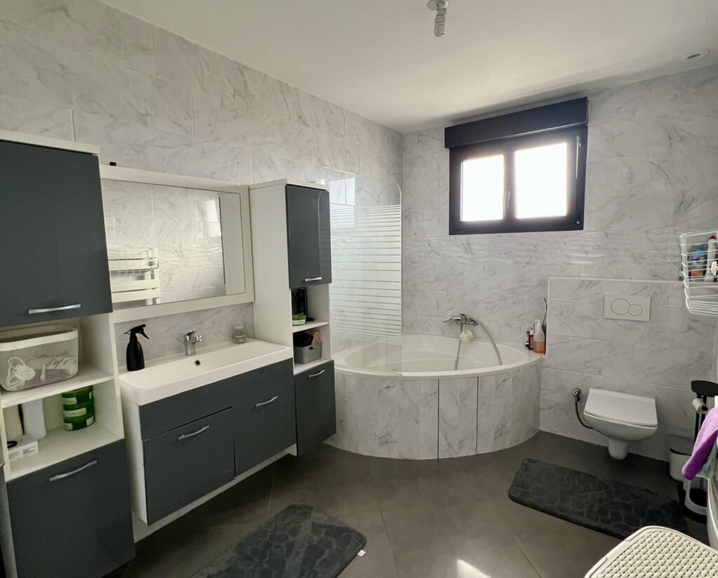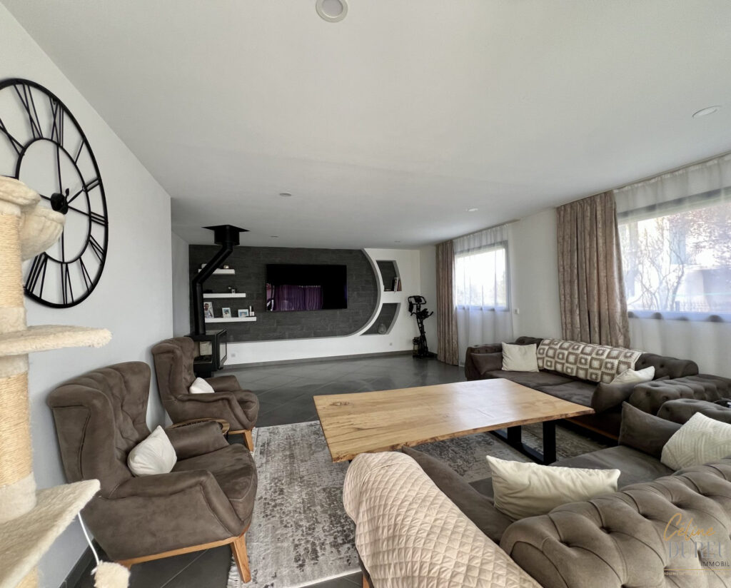 De belles prestations vous attendent : menuiseries entièrement électriques, des volets aux portes de garage et portail, chauffage par pompe à chaleur, adoucisseur d’eau ….