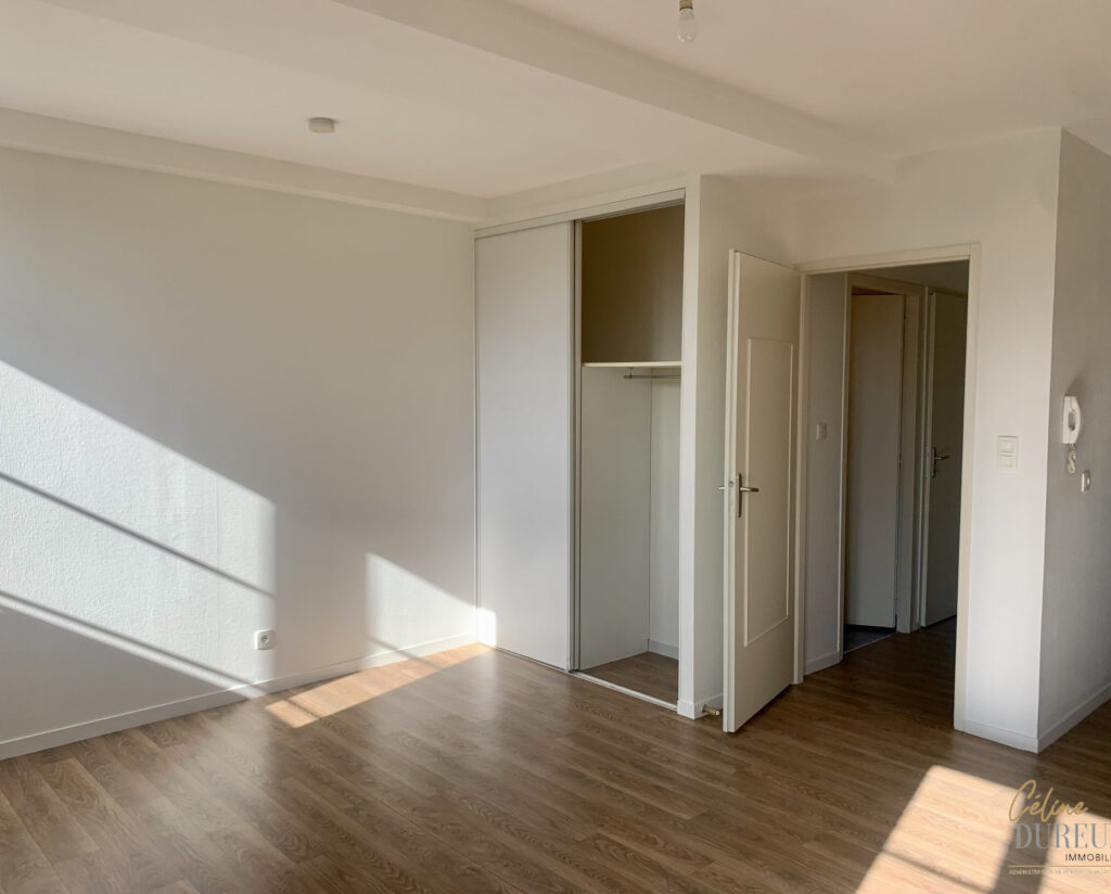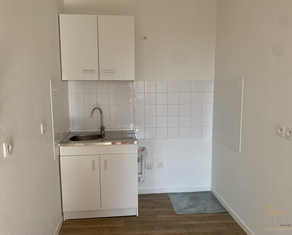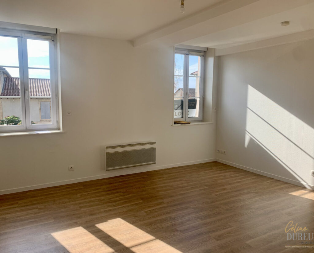 MANZIAT centre, studio d’environ 30 m2 refait à neuf, situé au 1er étage d’un petit immeuble, comprenant pièce principale avec placard, coin cuisine et salle de bains. Libre 15/01/2022. Loyer 275 euros /mois + 15 euros / mois de charges. Contact CELINE DUREUX IMMOBILIER Administration de biens et transactions 06.86.07.94.94 / contact@celine-dureux-immobilier.fr