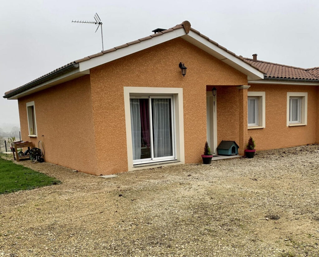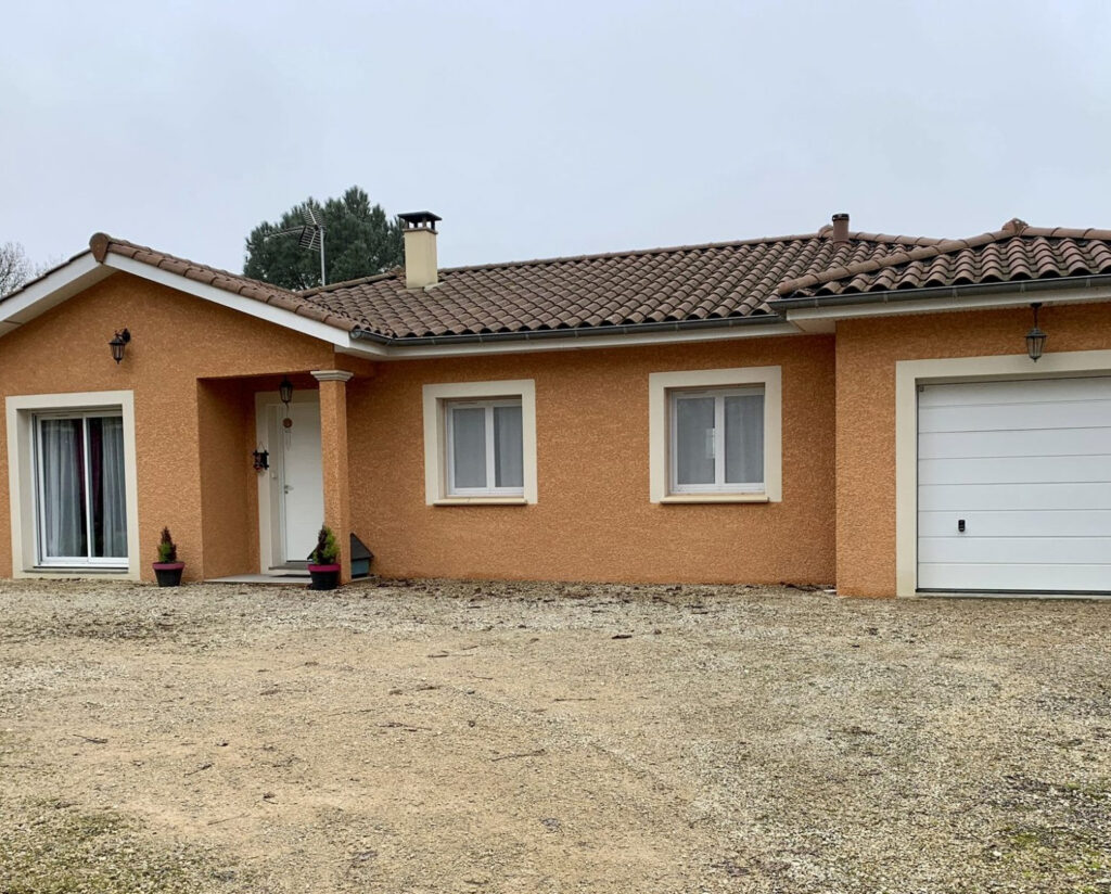 SAINT JULIEN SUR VEYLE, route de Saint Jean Bichard, villa récente de plain pied comprenant : hall d’entrée, grande pièce de vie de 46 m2 avec cuisine meublée, cellier, trois chambres avec placards, salle de bains avec douche et baignoire. Garage – buanderie. Chauffage par poêle à granulés et électrique. Volets électriques. Terrain clos. Libre 1er mars 2022. Loyer 800 euros /mois – Dépôt de garantie 800 euros – Honoraires de location 520 euros.